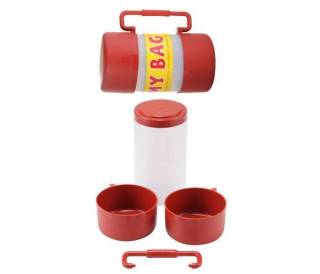O My Bag é um kit viagem multi uso. É um pote transparente com alça para transporte onde você pode colocar a ração e ao ser desmontado transforma-se em um comedouro e bebedouro.